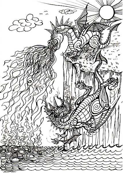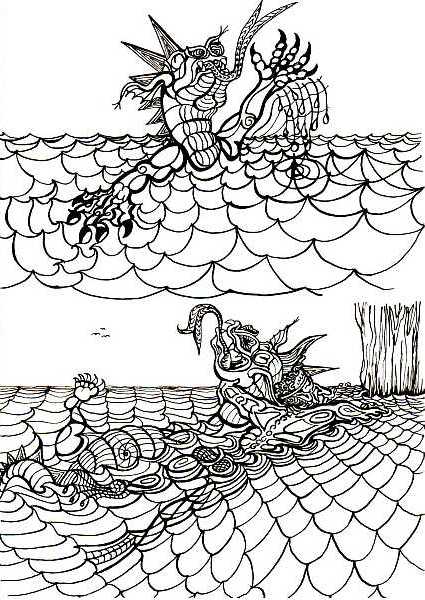 Statt was anderes zu mampfen, möchte er das Meer verdampfen. Das Meer ist aber riesengroß, drum geht die Sache in die Hos! Wellenberge rollen heran, bis der ärmste nicht mehr kann. Schließlich kippt er von den Socken, fällt ins Wasser, bleibt nicht trocken, bricht sich Knochen vom Gerippe bei dem Fall von der Klippe. Die Flügel kann er nicht mehr spüren, nur noch mit den Armen rühren in dem feuchten Element, das er leider gar nicht kennt. Dabei schluckt er auch noch Wasser. Sein Gesicht wird immer blasser. Da rettet ihn aus höchster Not ein Wassermann vor dem Tod. Dieser zieht den schweren Drachen aus der Tiefe hin zum Flachen, lückentextlückentextlückentextlückentextlückentextlückentext |