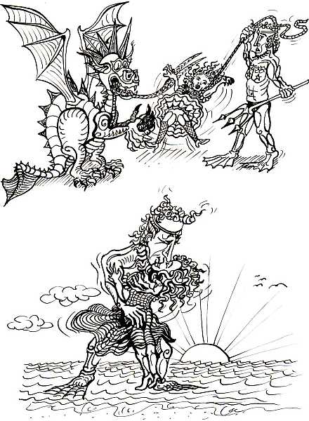 Neptun kennt sehr viele Riffe. Dort liegen unter Wasser Schiffe, die goldbeladen einstmals sanken, um die sich nun Korallen ranken. Einen ziemlich großen Fund bergen sie vom Meeresgrund und kauften sich noch einen Wagen, dieser soll den Käfig tragen. So kommen sie zum Königsschoß. Neptun reitet hoch zu Roß. Ihr Empfang ist grandios und der Prinzessin Freude groß. Der König ist so gut gelaunt, daß er die Hochzeit ausposaunt. Neptun freut sich wie verrückt. Es scheint als sei sein Plan geglückt. Doch schon in ihrer Hochzeitsnacht wird Neptun von ihr klar gemacht: Der böse Drachen, der muß sterben, sonst wird sie ihm den Spaß verderben! lückentextlückentextlückentextlückentextlückentextlückentext |